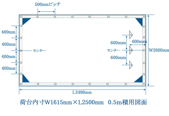 0.5m積用 シートサイズW2600mm×L3480mm後部ペケット付 積荷0.5m~0.9m程度まで対応