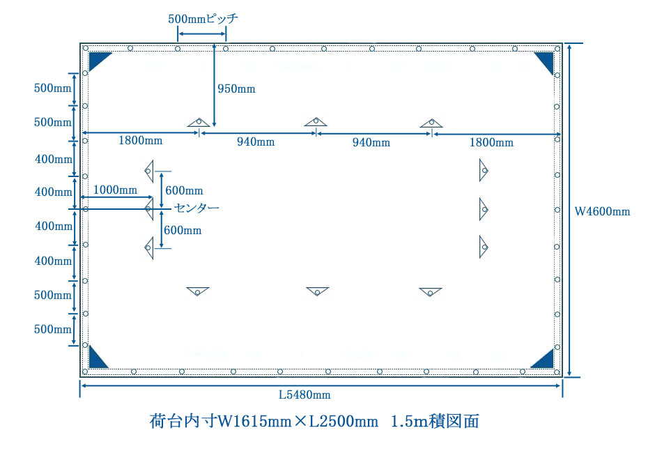 1.5m積用 シートサイズW4600mm×L5480mm四方ペケット付 積荷1.5m~1.9m程度まで対応