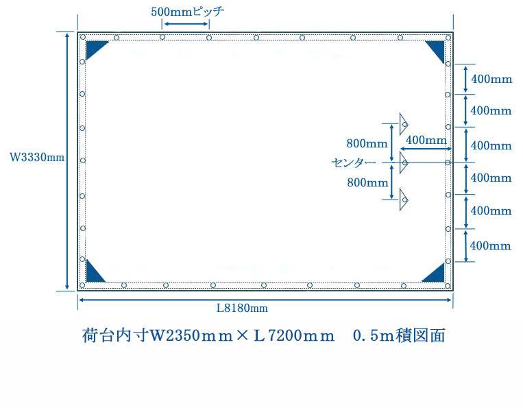 0.5m積用 シートサイズW3330mm×L8180mm後部ペケット付 積荷0.5m~0.9m程度まで対応