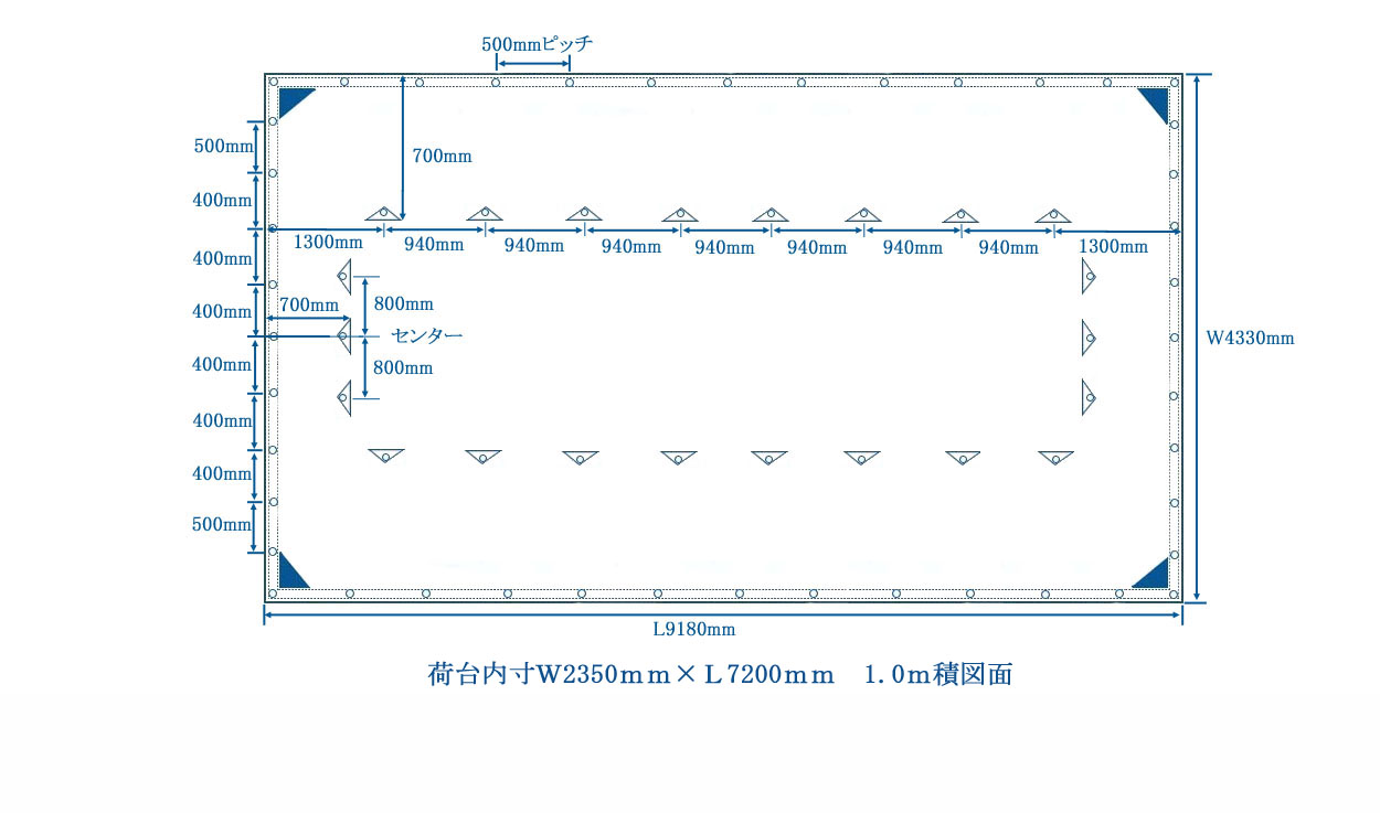 1.0m積用 シートサイズW4330mm×L9180mm四方ペケット付 積荷1.0m~1.4m程度まで対応