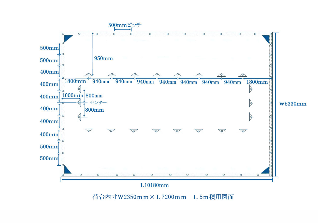 1.5m積用 シートサイズW5330mm×L10180mm四方ペケット付 積荷1.5m~1.9m程度まで対応