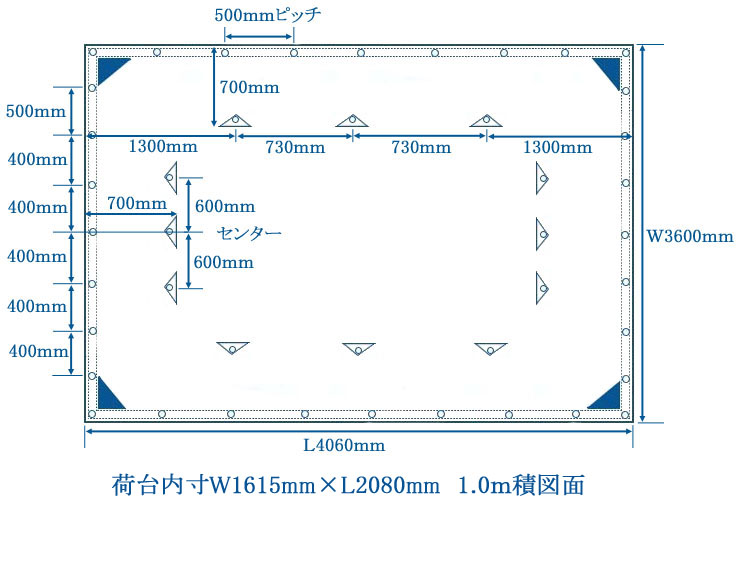 1.0m積用 シートサイズW3600mm×L4060mm四方ペケット付 積荷1.0m~1.4m程度まで対応