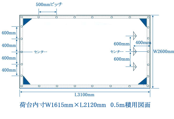 0.5m積用 シートサイズW2600mm×L3100mm後部ペケット付 積荷0.5m~0.9m程度まで対応