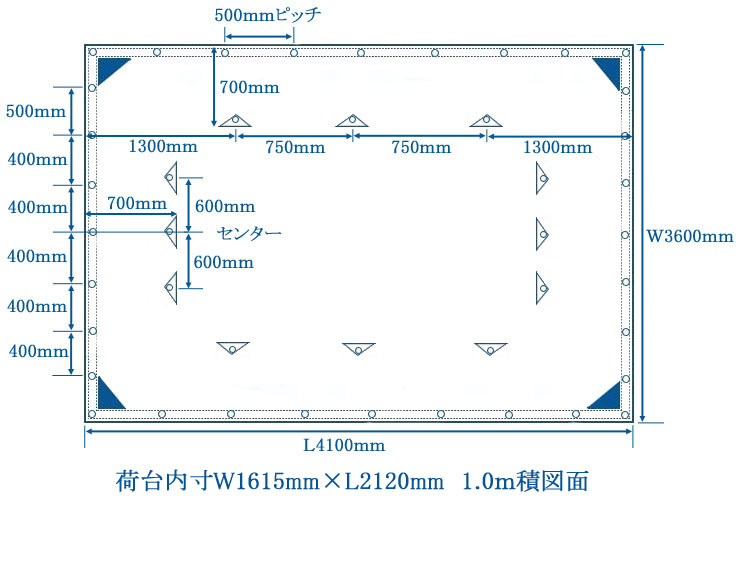 1.0m積用 シートサイズW3600mm×L4100mm四方ペケット付 積荷1.0m~1.4m程度まで対応