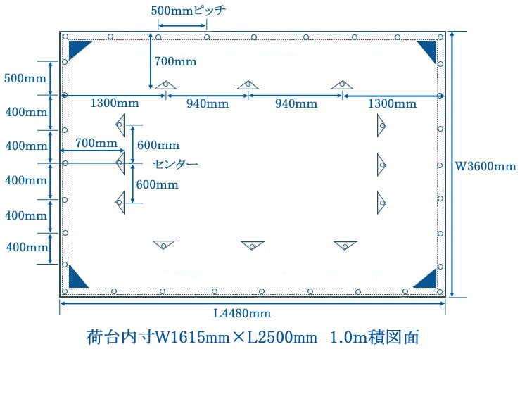 1.0m積用 シートサイズW3600mm×L4480mm四方ペケット付 積荷1.0m~1.4m程度まで対応