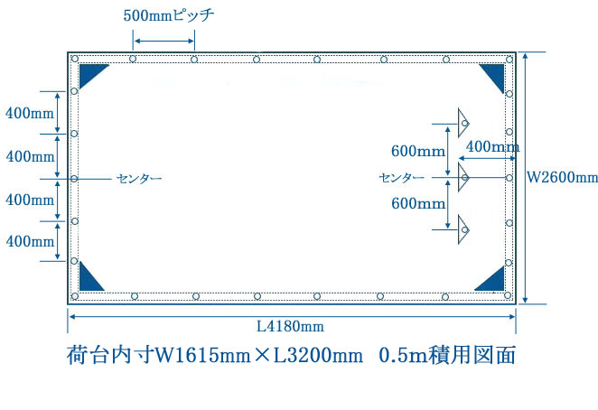 0.5m積用 シートサイズW2600mm×L4180mm後部ペケット付 積荷0.5m~0.9m程度まで対応