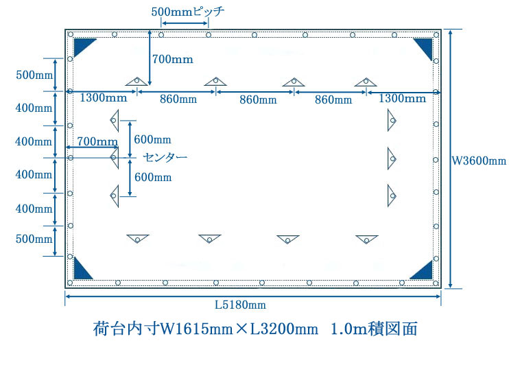 1.0m積用 シートサイズW3600mm×L5180mm四方ペケット付 積荷1.0m~1.4m程度まで対応
