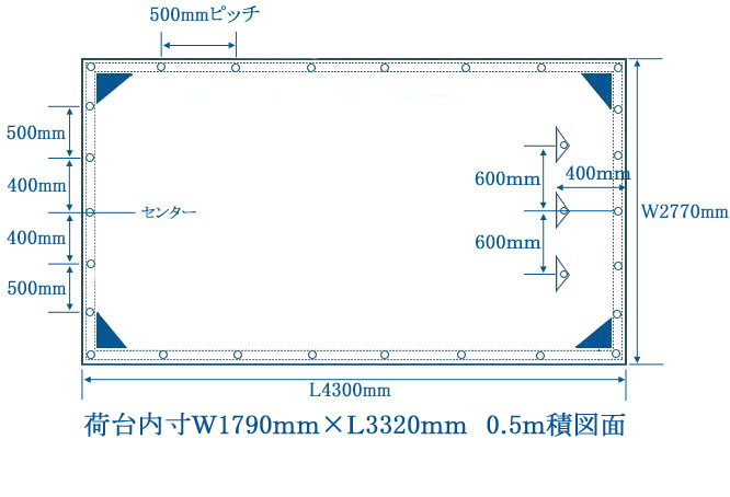 0.5m積用 シートサイズW2770mm×L4300mm後部ペケット付 積荷0.5m~0.9m程度まで対応