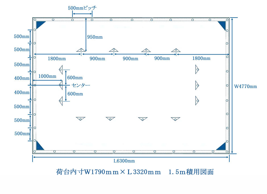 1.5m積用 シートサイズW4770mm×L6300mm四方ペケット付 積荷1.5m~1.9m程度まで対応
