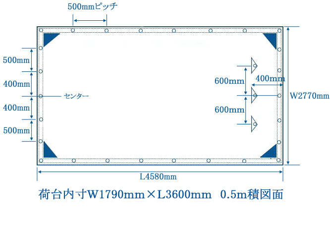 0.5m積用 シートサイズW2770mm×L4580mm後部ペケット付 積荷0.5m~0.9m程度まで対応