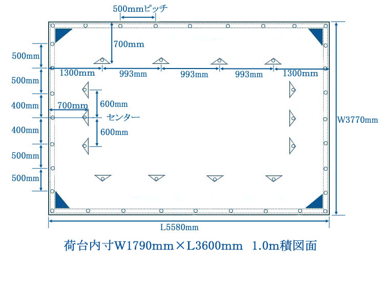 1.0m積用 シートサイズW3770mm×L5580mm四方ペケット付 積荷1.0m~1.4m程度まで対応