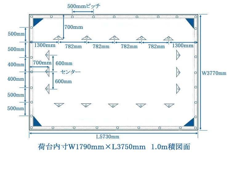 1.0m積用 シートサイズW3770mm×L5730mm四方ペケット付 積荷1.0m~1.4m程度まで対応