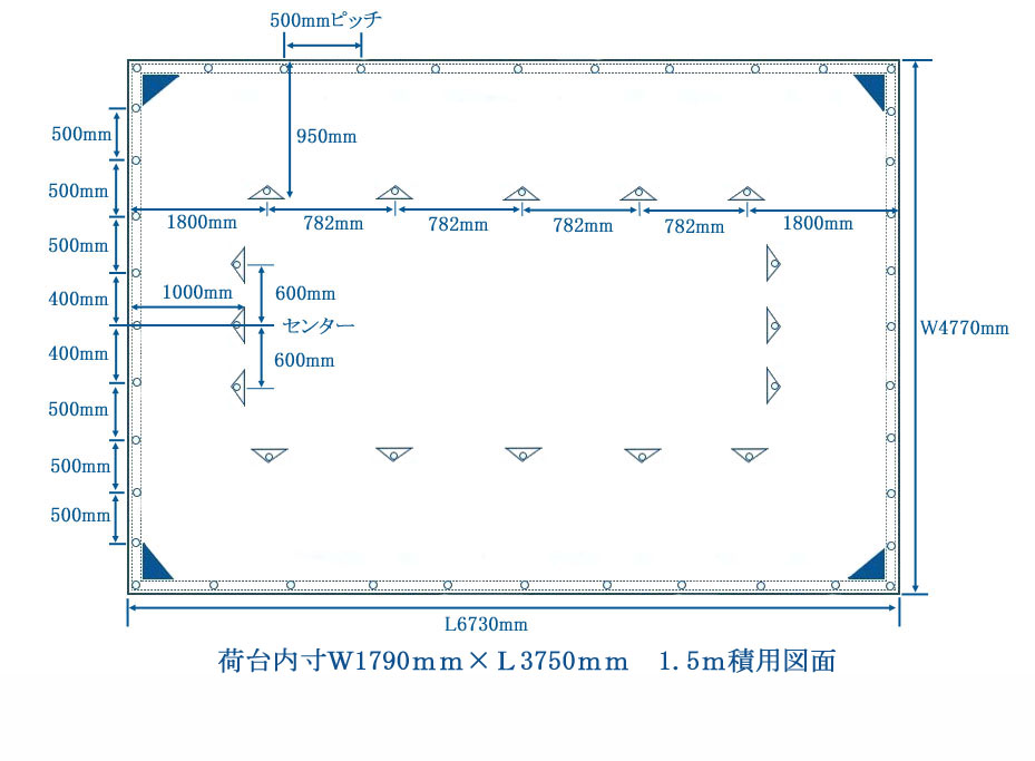 1.5m積用 シートサイズW4770mm×L6730mm四方ペケット付 積荷1.5m~1.9m程度まで対応