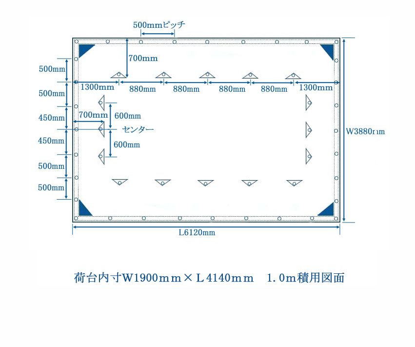 1.0m積用 シートサイズW3880mm×L6120mm四方ペケット付 積荷1.0m~1.4m程度まで対応