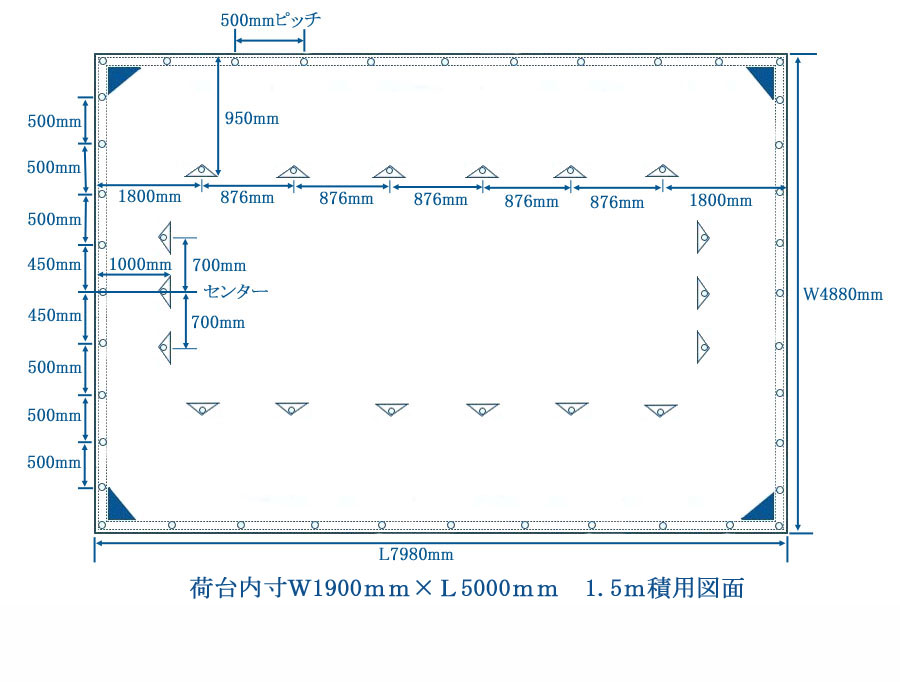 1.5m積用 シートサイズW4880mm×L7980mm四方ペケット付 積荷1.5m~1.9m程度まで対応