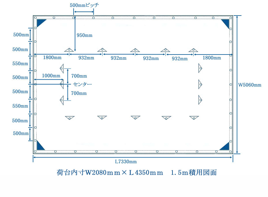 1.5m積用 シートサイズW5060mm×L7330mm四方ペケット付 積荷1.5m~1.9m程度まで対応