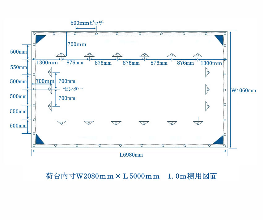 トラックシート 荷台内寸W2080mm×L5000mmにご使用頂けます。
