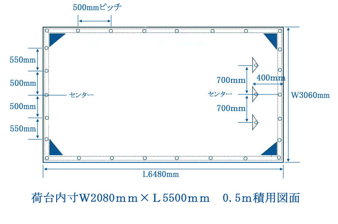 0.5m積用 シートサイズW3060mm×L6480mm後部ペケット付 積荷0.5m~0.9m程度まで対応