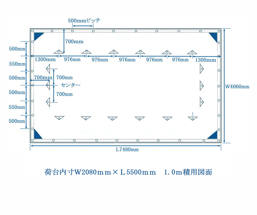 1.0m積用 シートサイズW4060mm×L7480mm四方ペケット付 積荷1.0m~1.4m程度まで対応