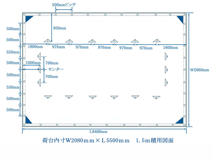 1.5m積用 シートサイズW5060mm×L8480mm四方ペケット付 積荷1.5m~1.9m程度まで対応