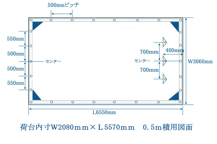 0.5m積用 シートサイズW3060mm×L6550mm後部ペケット付 積荷0.5m~0.9m程度まで対応