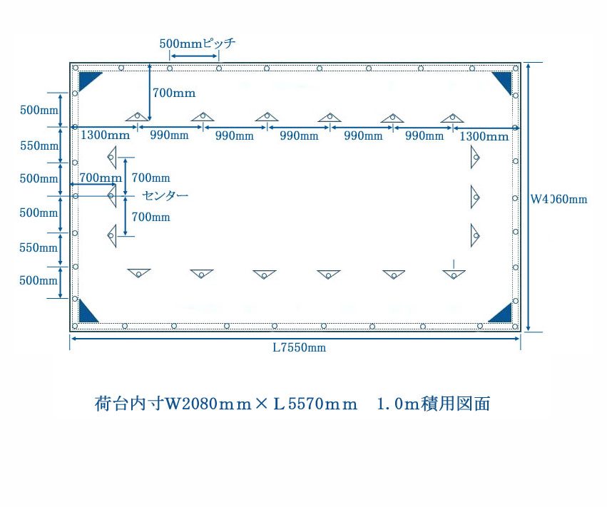 1.0m積用 シートサイズW4060mm×L7550mm四方ペケット付 積荷1.0m~1.4m程度まで対応