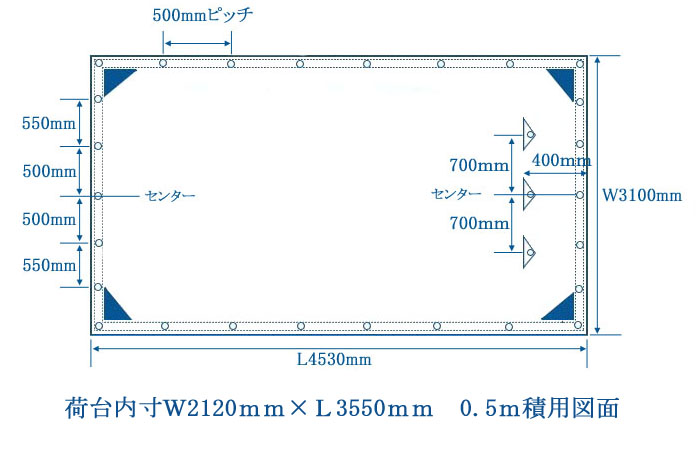 0.5m積用 シートサイズW3100mm×L4530mm後部ペケット付 積荷0.5m~0.9m程度まで対応