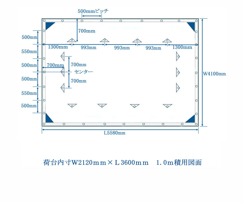 1.0m積用 シートサイズW4100mm×L5580mm四方ペケット付 積荷1.0m~1.4m程度まで対応