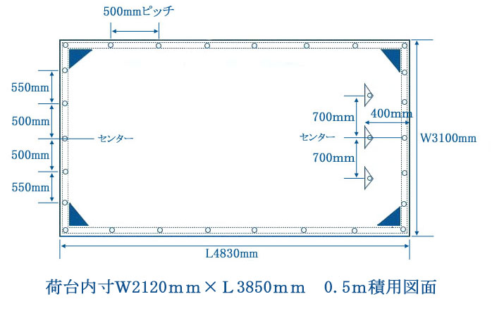 0.5m積用 シートサイズW3100mm×L4830mm後部ペケット付 積荷0.5m~0.9m程度まで対応