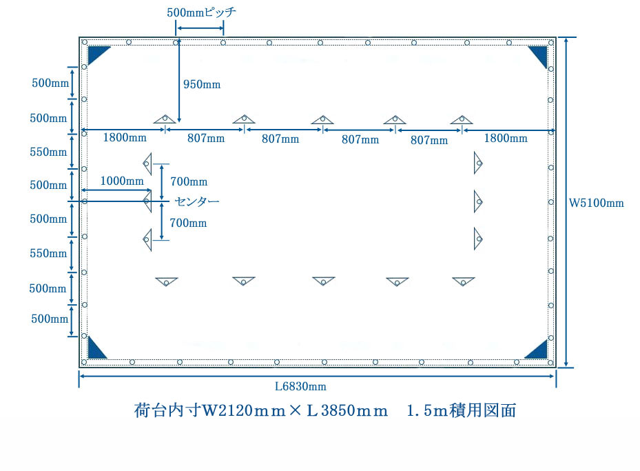 1.5m積用 シートサイズW5100mm×L6830mm四方ペケット付 積荷1.5m~1.9m程度まで対応