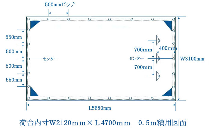 0.5m積用 シートサイズW3100mm×L5680mm後部ペケット付 積荷0.5m~0.9m程度まで対応