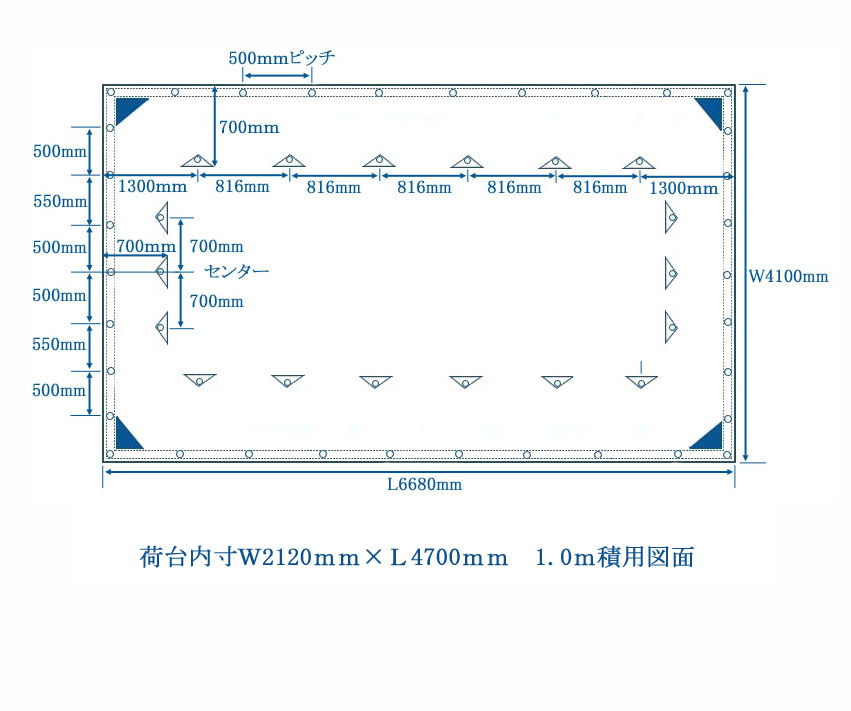 1.0m積用 シートサイズW4100mm×L6680mm四方ペケット付 積荷1.0m~1.4m程度まで対応
