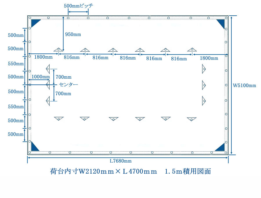 1.5m積用 シートサイズW5100mm×L7680mm四方ペケット付 積荷1.5m~1.9m程度まで対応