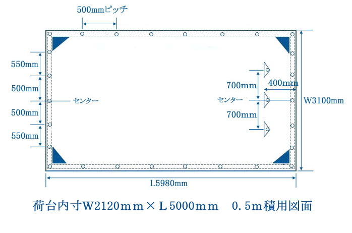 0.5m積用 シートサイズW3100mm×L5980mm後部ペケット付 積荷0.5m~0.9m程度まで対応