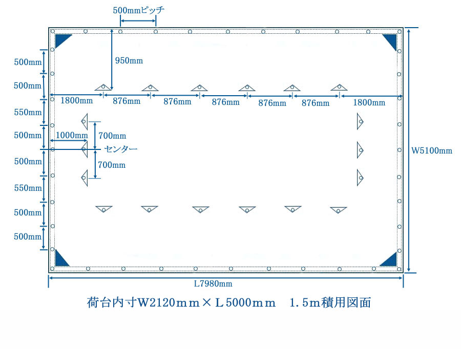 1.5m積用 シートサイズW5100mm×L7980mm四方ペケット付 積荷1.5m~1.9m程度まで対応