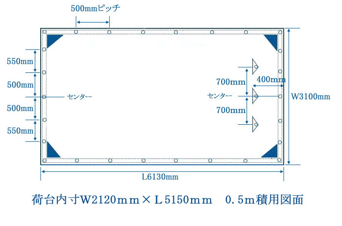 0.5m積用 シートサイズW3100mm×L6130mm後部ペケット付 積荷0.5m~0.9m程度まで対応