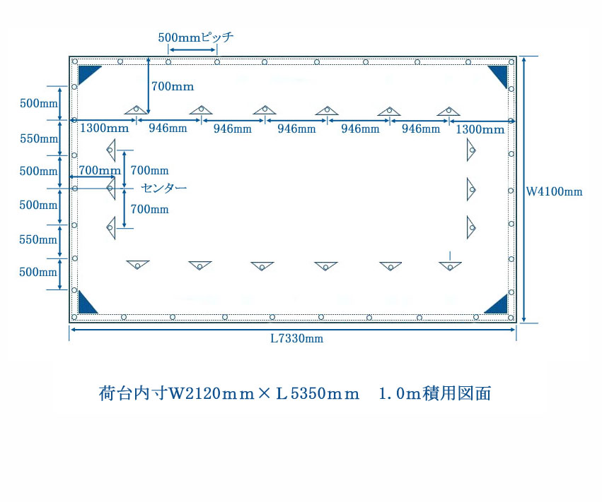 1.0m積用 シートサイズW4100mm×L7330mm四方ペケット付 積荷1.0m~1.4m程度まで対応