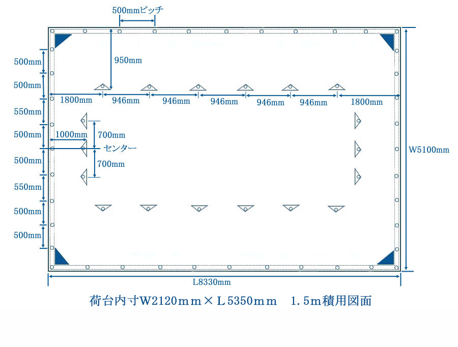 1.5m積用 シートサイズW5100mm×L8330mm四方ペケット付 積荷1.5m~1.9m程度まで対応