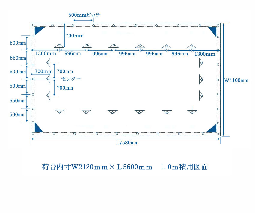 1.0m積用 シートサイズW4100mm×L7580mm四方ペケット付 積荷1.0m~1.4m程度まで対応