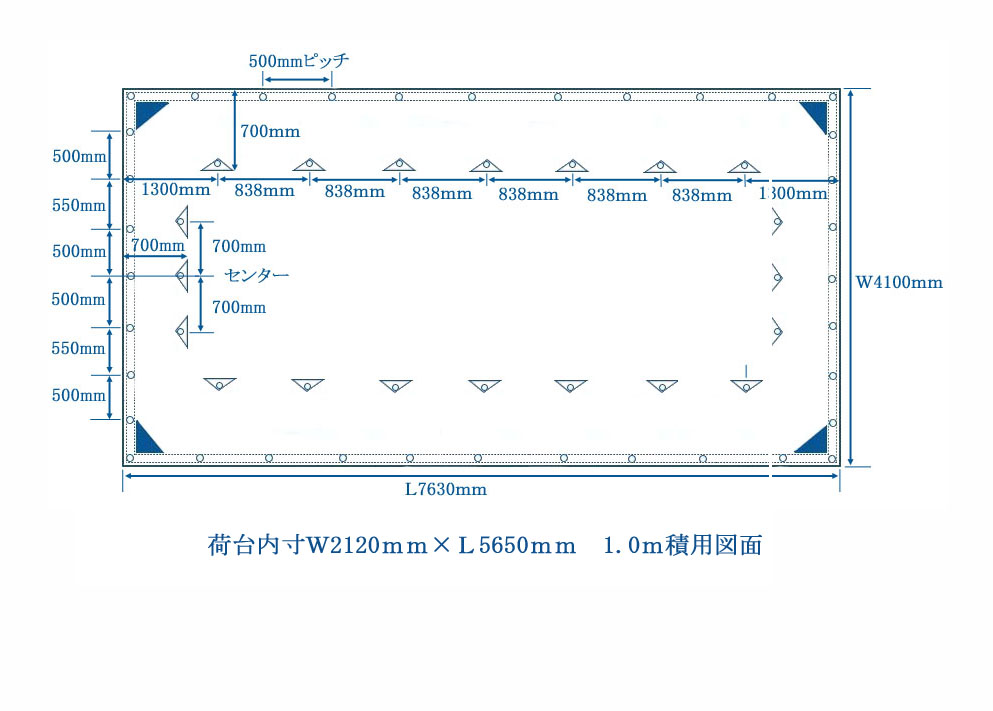 1.0m積用 シートサイズW4100mm×L7630mm四方ペケット付 積荷1.0m~1.4m程度まで対応