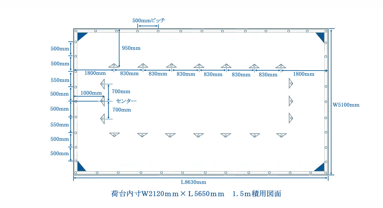 1.5m積用 シートサイズW5100mm×L8630mm四方ペケット付 積荷1.5m~1.9m程度まで対応