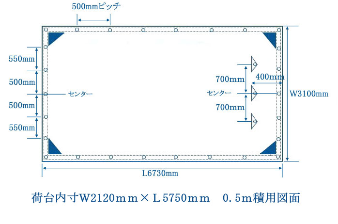 0.5m積用 シートサイズW3100mm×L6730mm後部ペケット付 積荷0.5m~0.9m程度まで対応