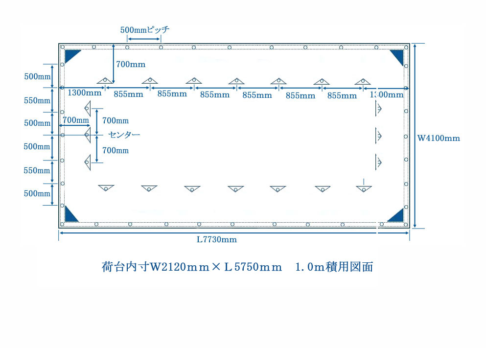 1.0m積用 シートサイズW4100mm×L7730mm四方ペケット付 積荷1.0m~1.4m程度まで対応