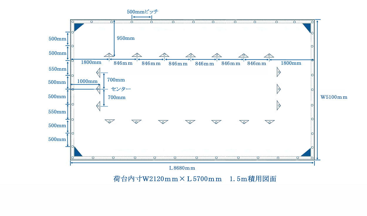 1.5m積用 シートサイズW5100mm×L8730mm四方ペケット付 積荷1.5m~1.9m程度まで対応