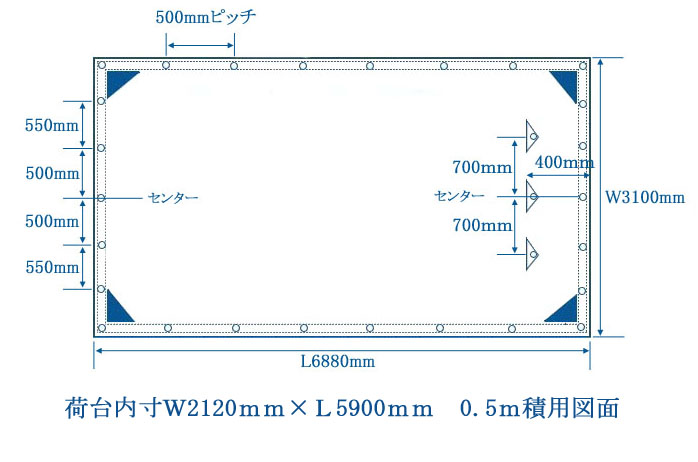 0.5m積用 シートサイズW3100mm×L6880mm後部ペケット付 積荷0.5m~0.9m程度まで対応