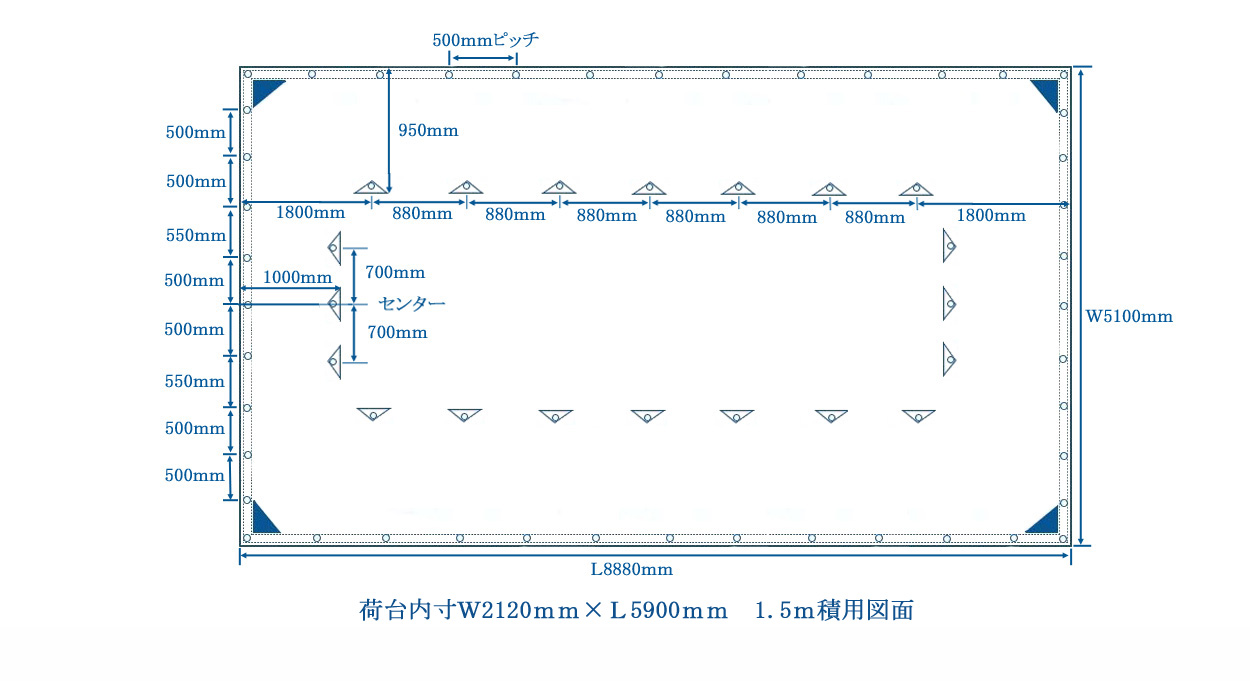 1.5m積用 シートサイズW5100mm×L8880mm四方ペケット付 積荷1.5m~1.9m程度まで対応
