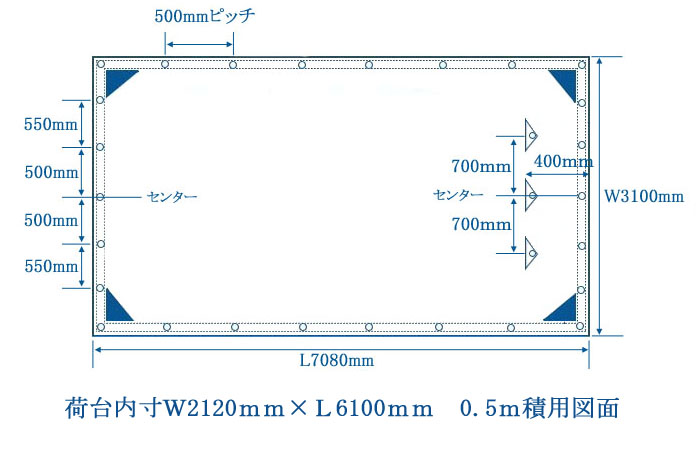 0.5m積用 シートサイズW3100mm×L7080mm後部ペケット付 積荷0.5m~0.9m程度まで対応