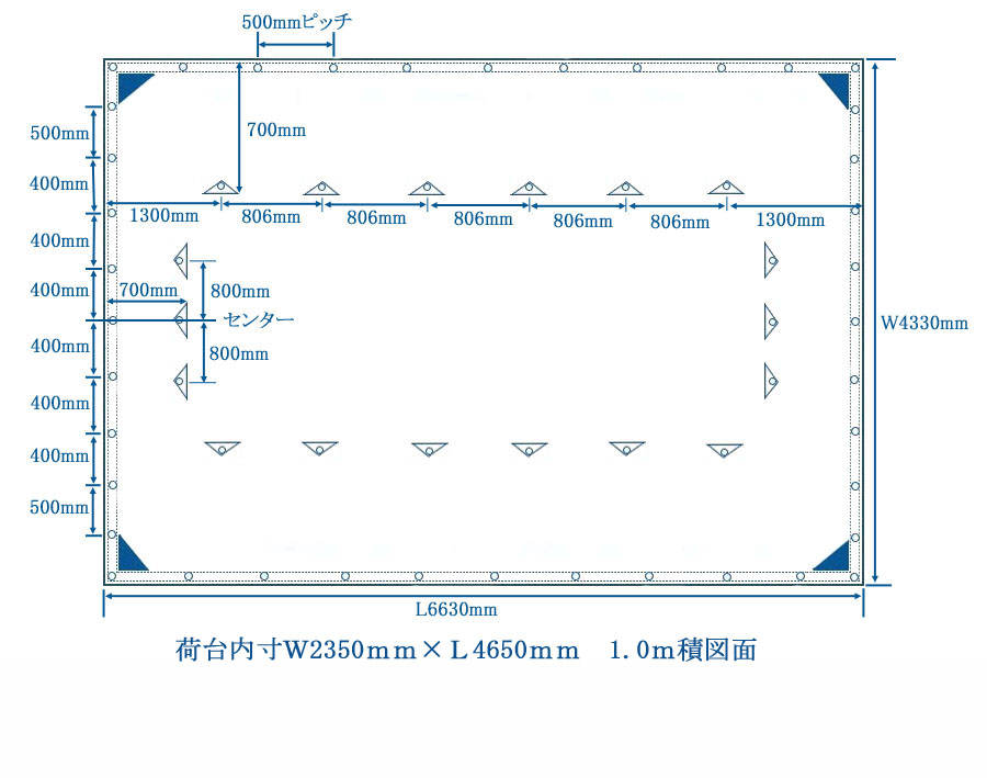 1.0m積用 シートサイズW4330mm×L6630mm四方ペケット付 積荷1.0m~1.4m程度まで対応