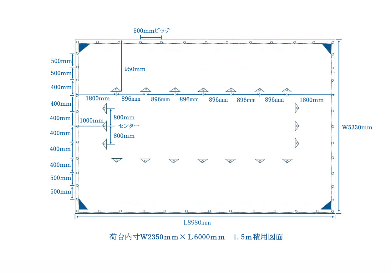 1.5m積用 シートサイズW5330mm×L8980mm四方ペケット付 積荷1.5m~1.9m程度まで対応