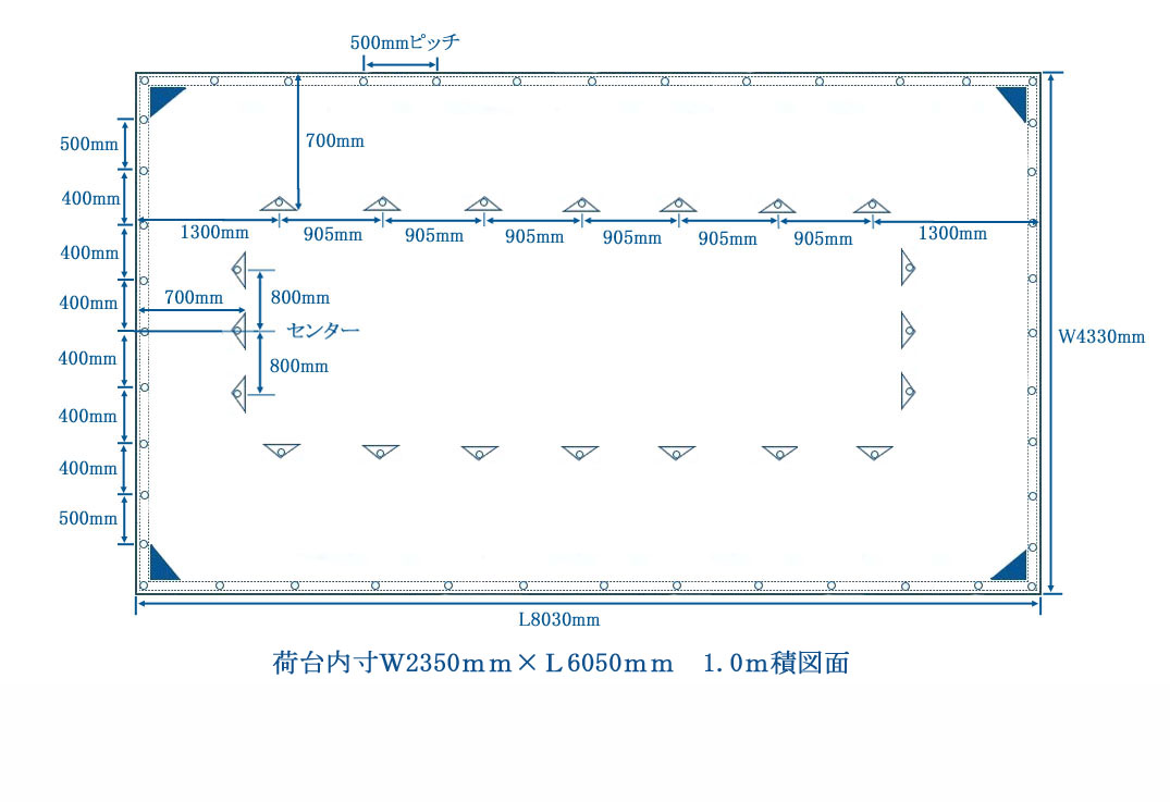 1.0m積用 シートサイズW4330mm×L8030mm四方ペケット付 積荷1.0m~1.4m程度まで対応